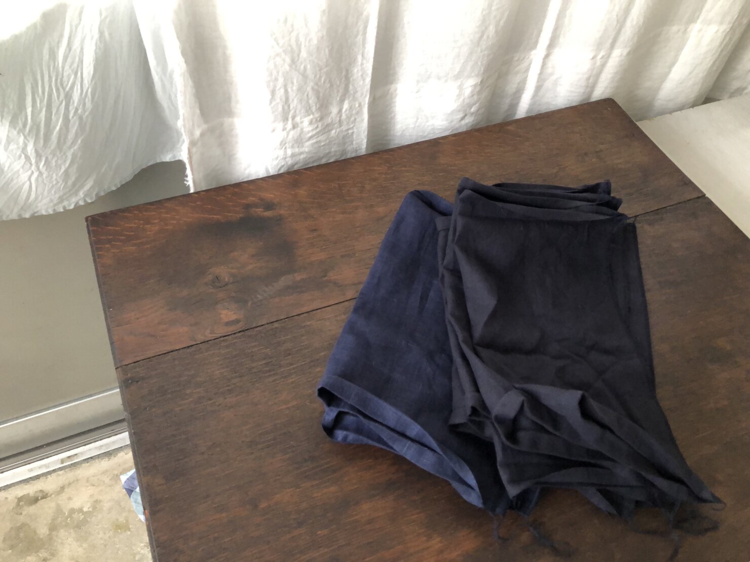 リネンの生地整理をしています。