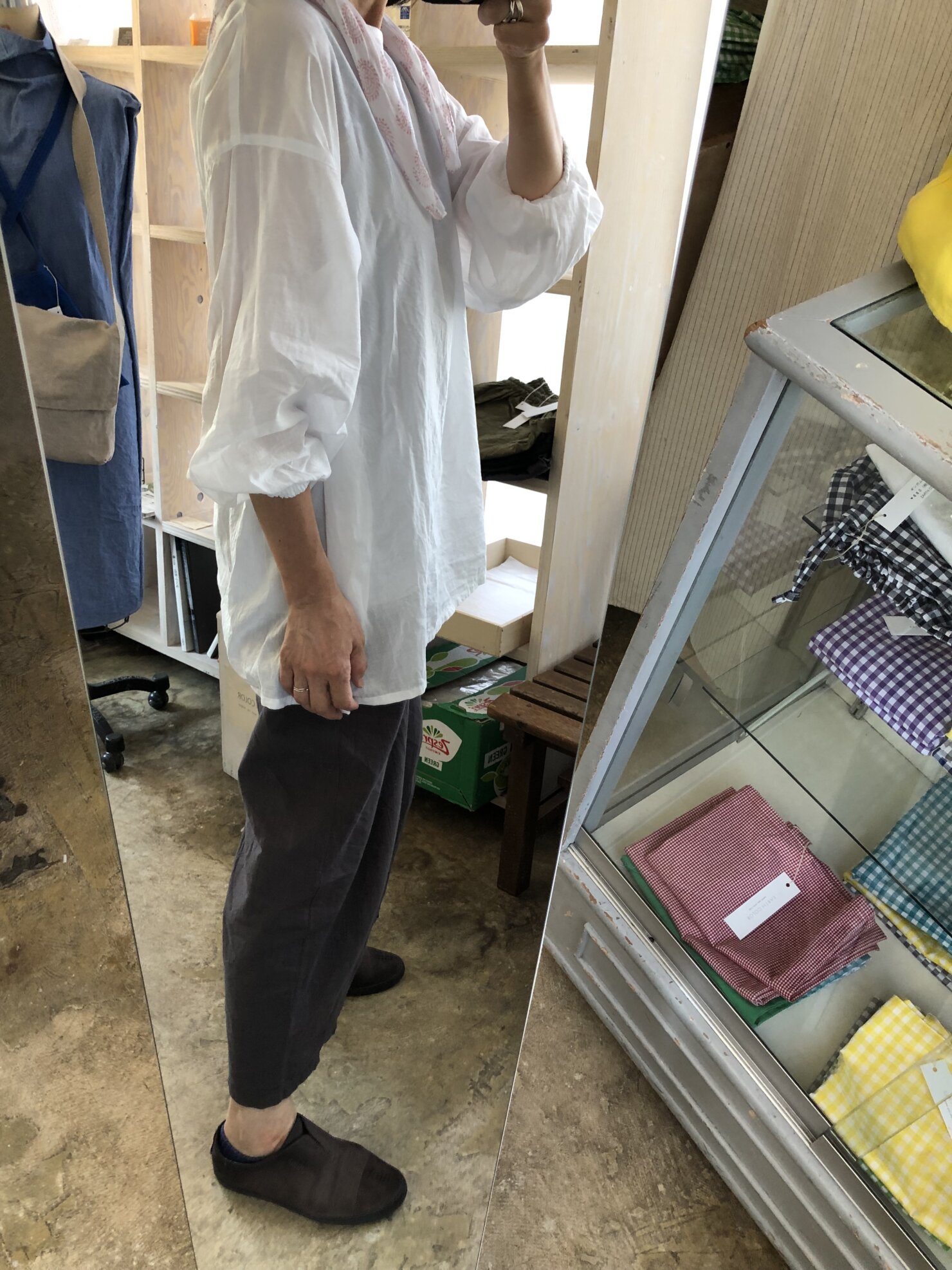 今朝は、涼しいブラウスで。