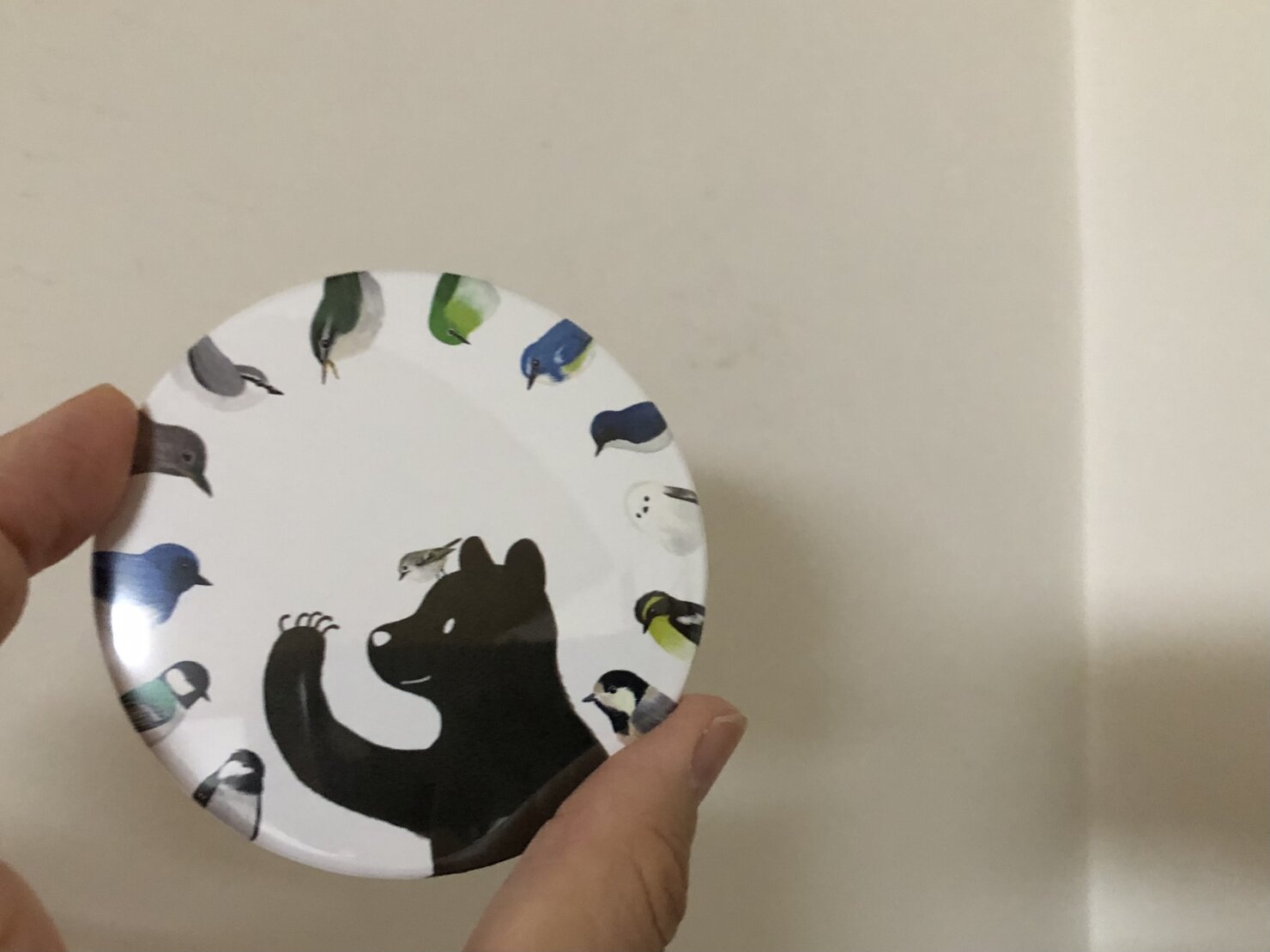かわいい小鳥たちと熊の缶ミラー