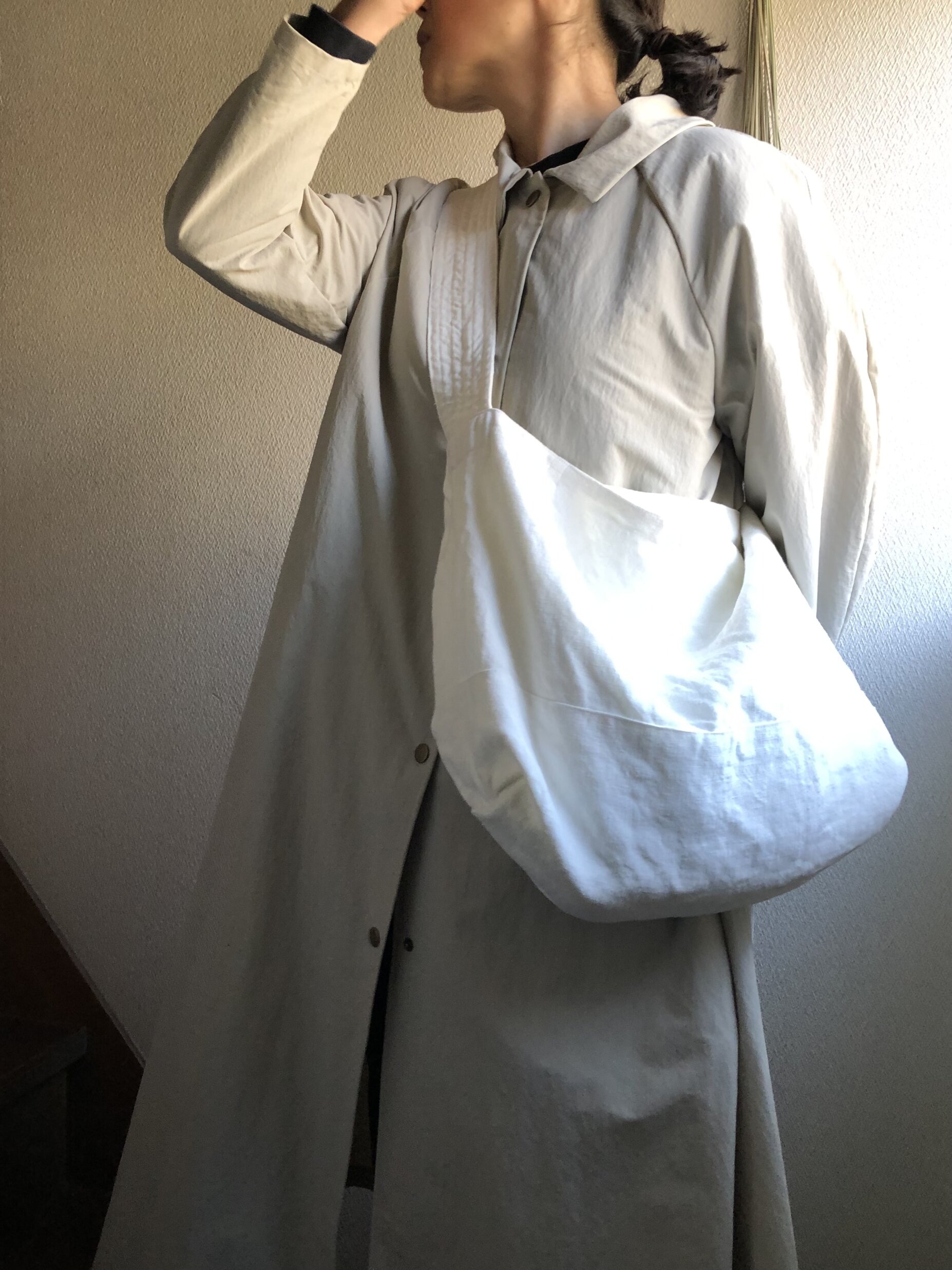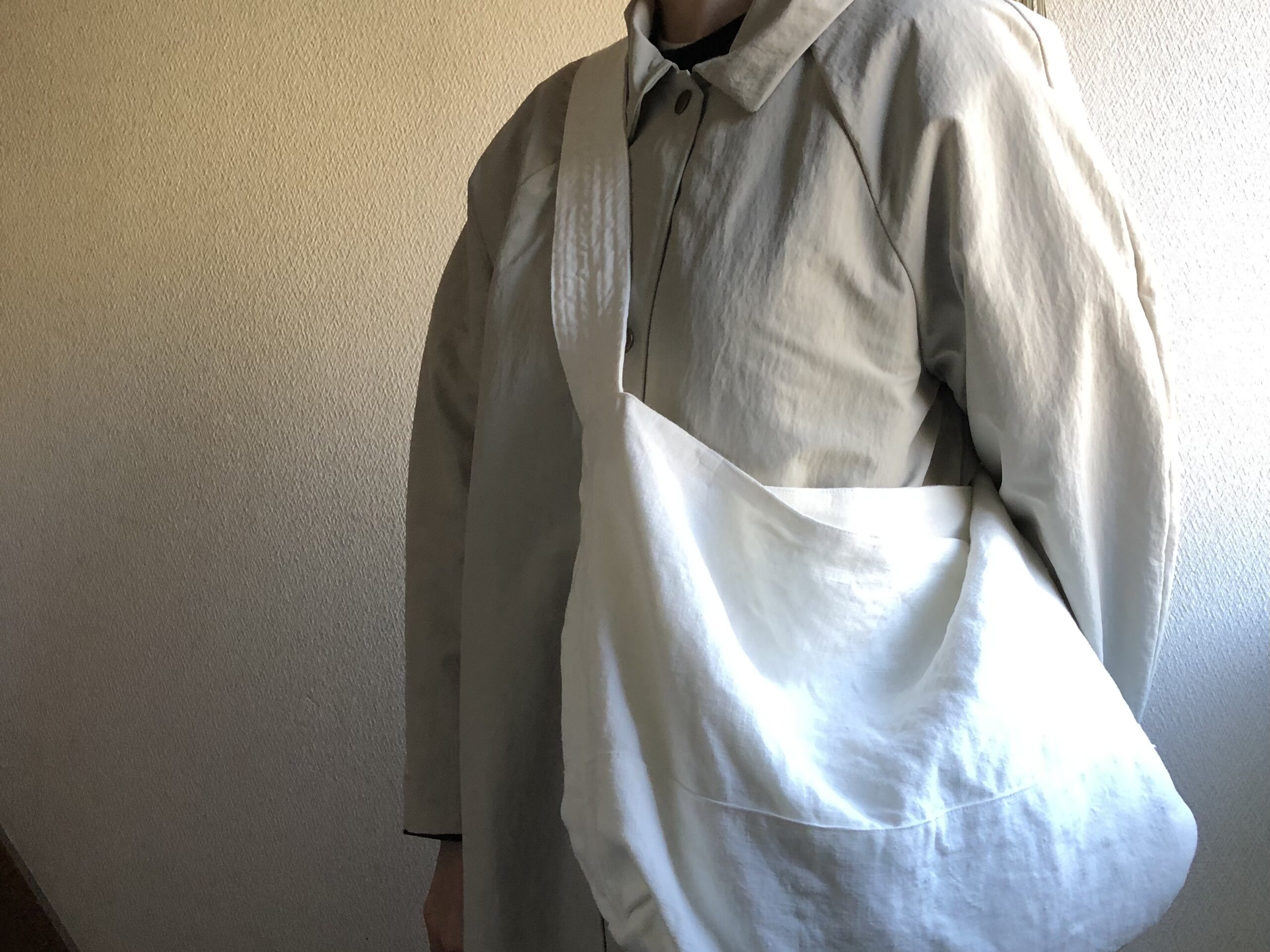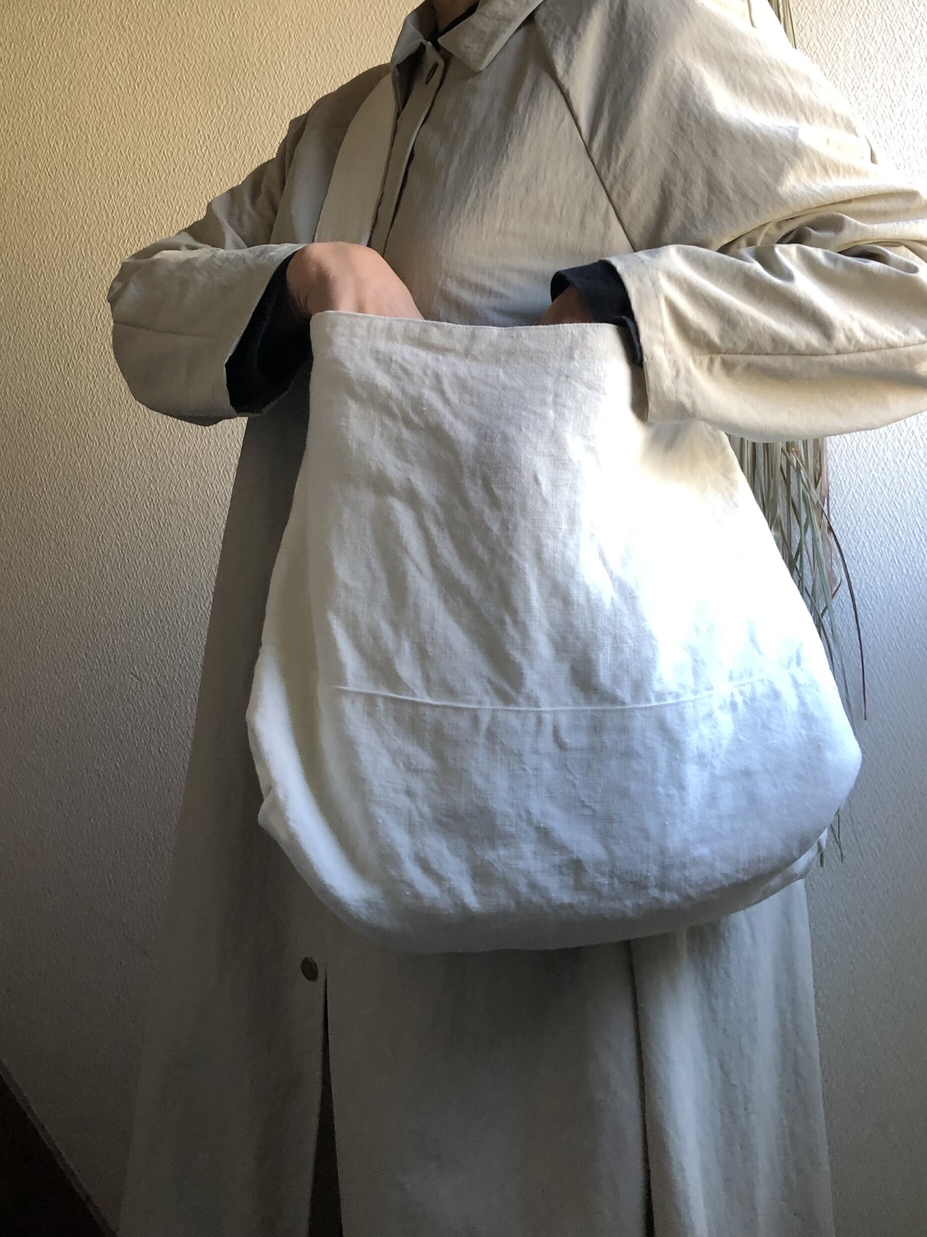 リネンのワンショルダーは、まぁるくなります。