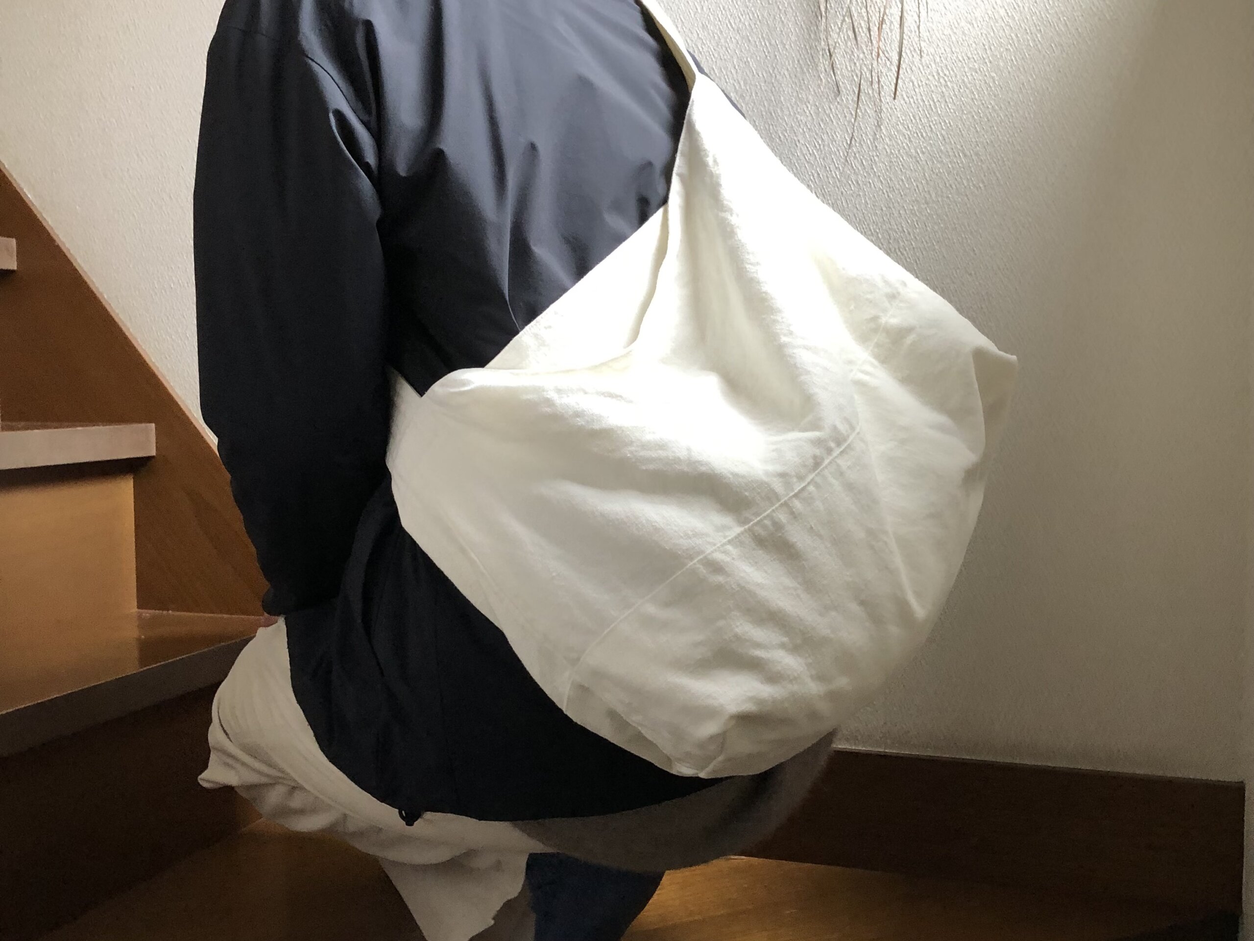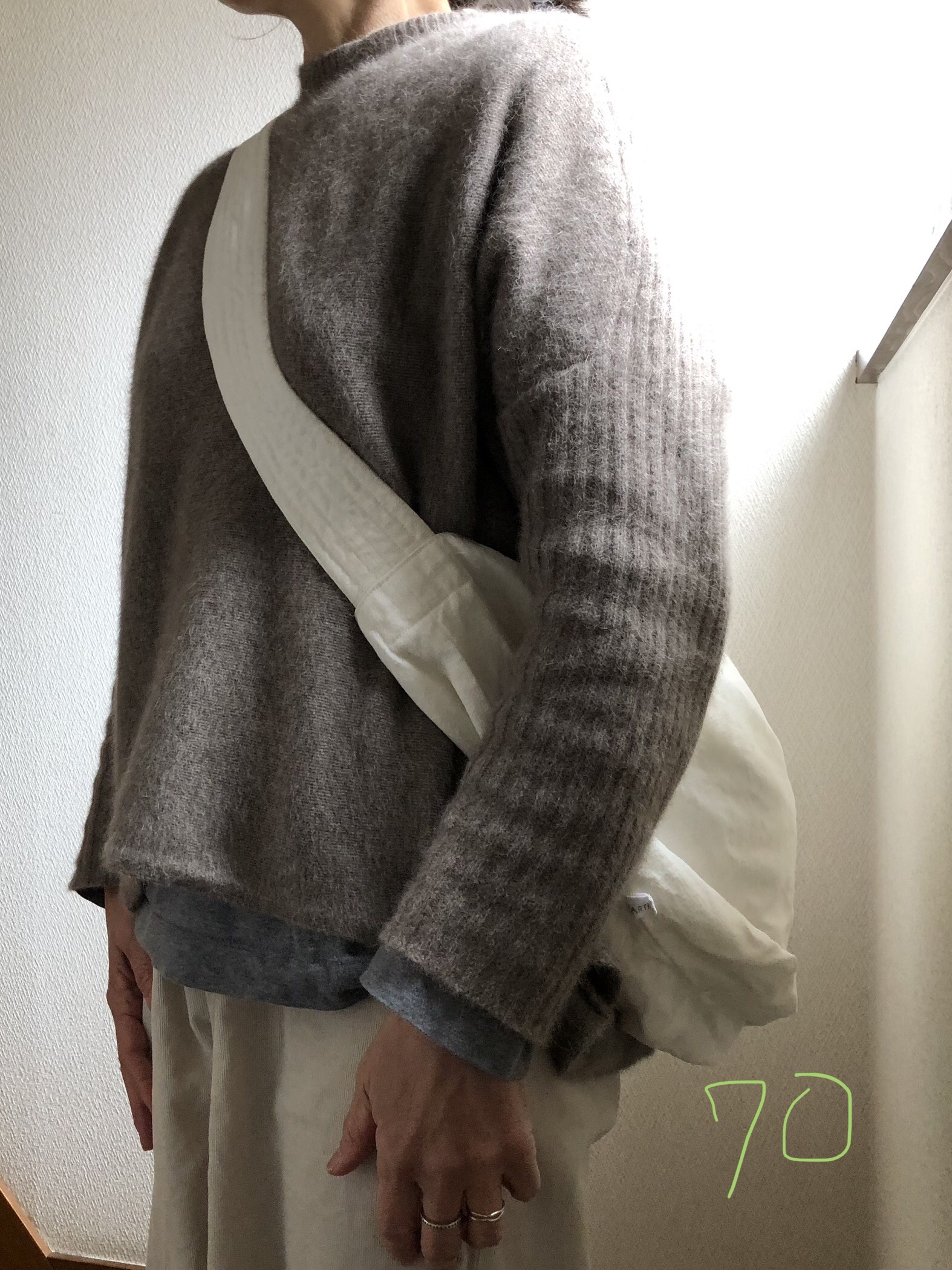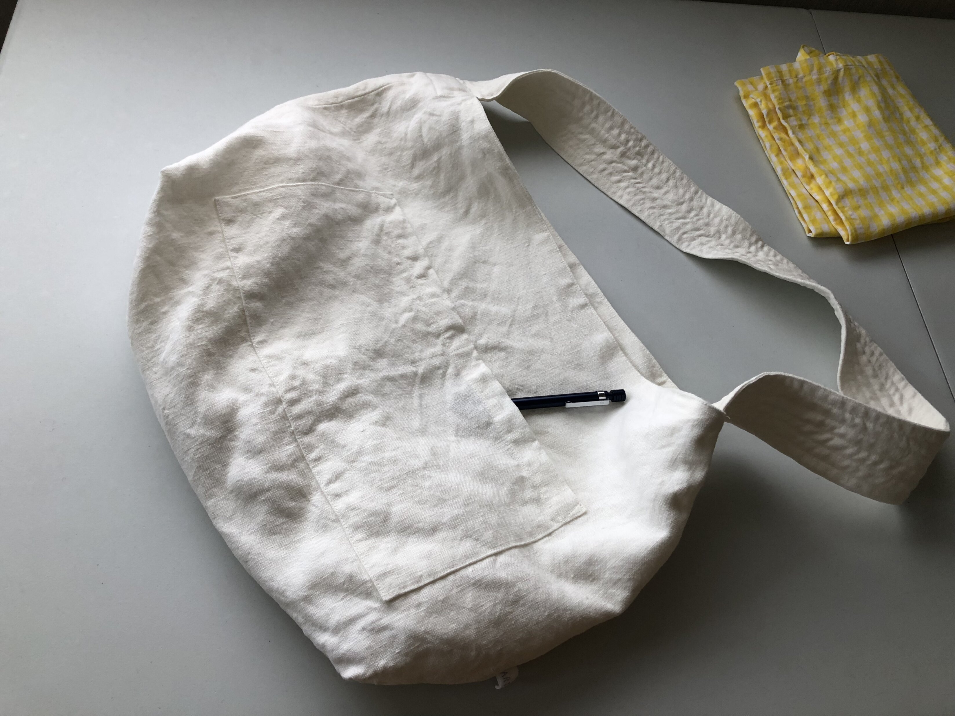 リネンのワンショルダーは、まぁるくなります。