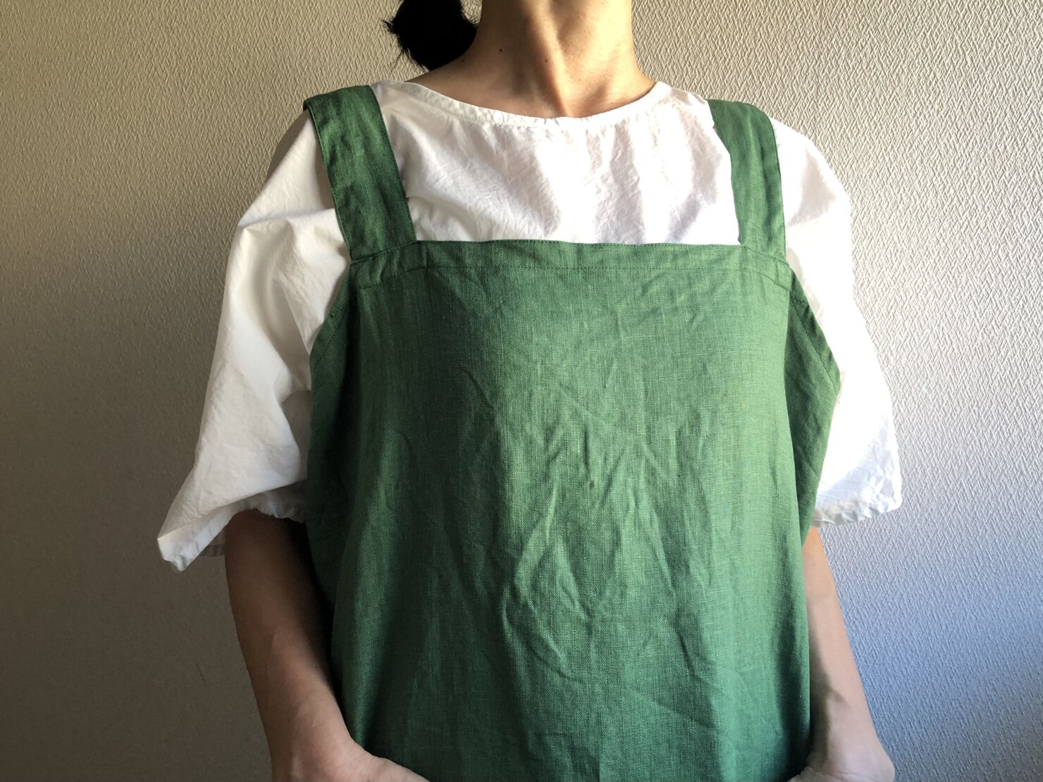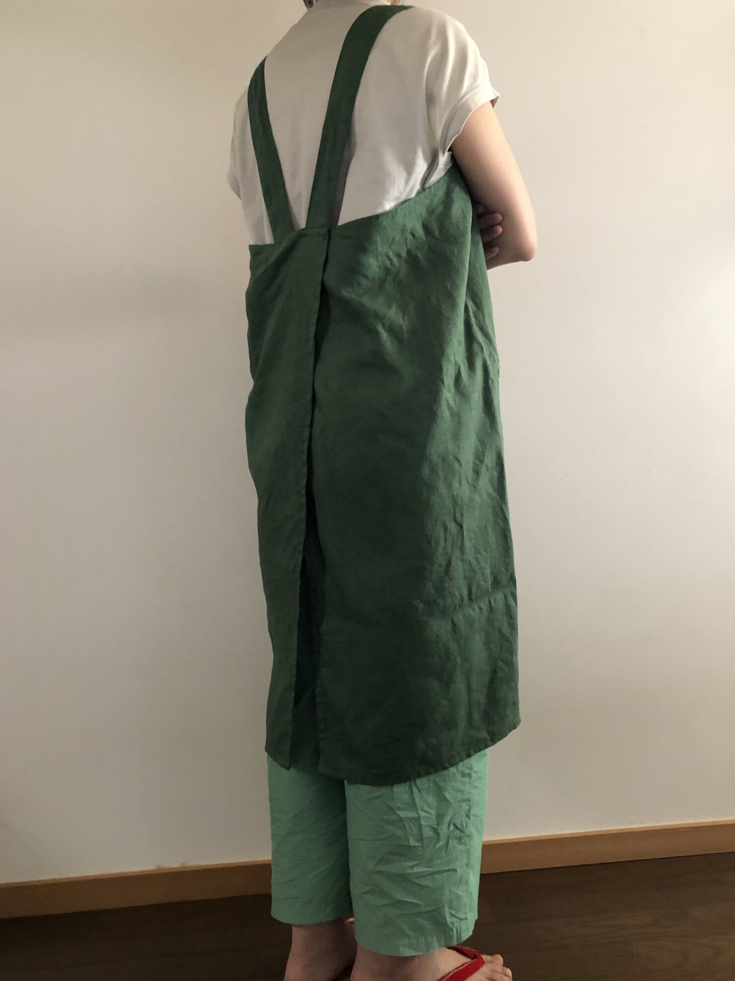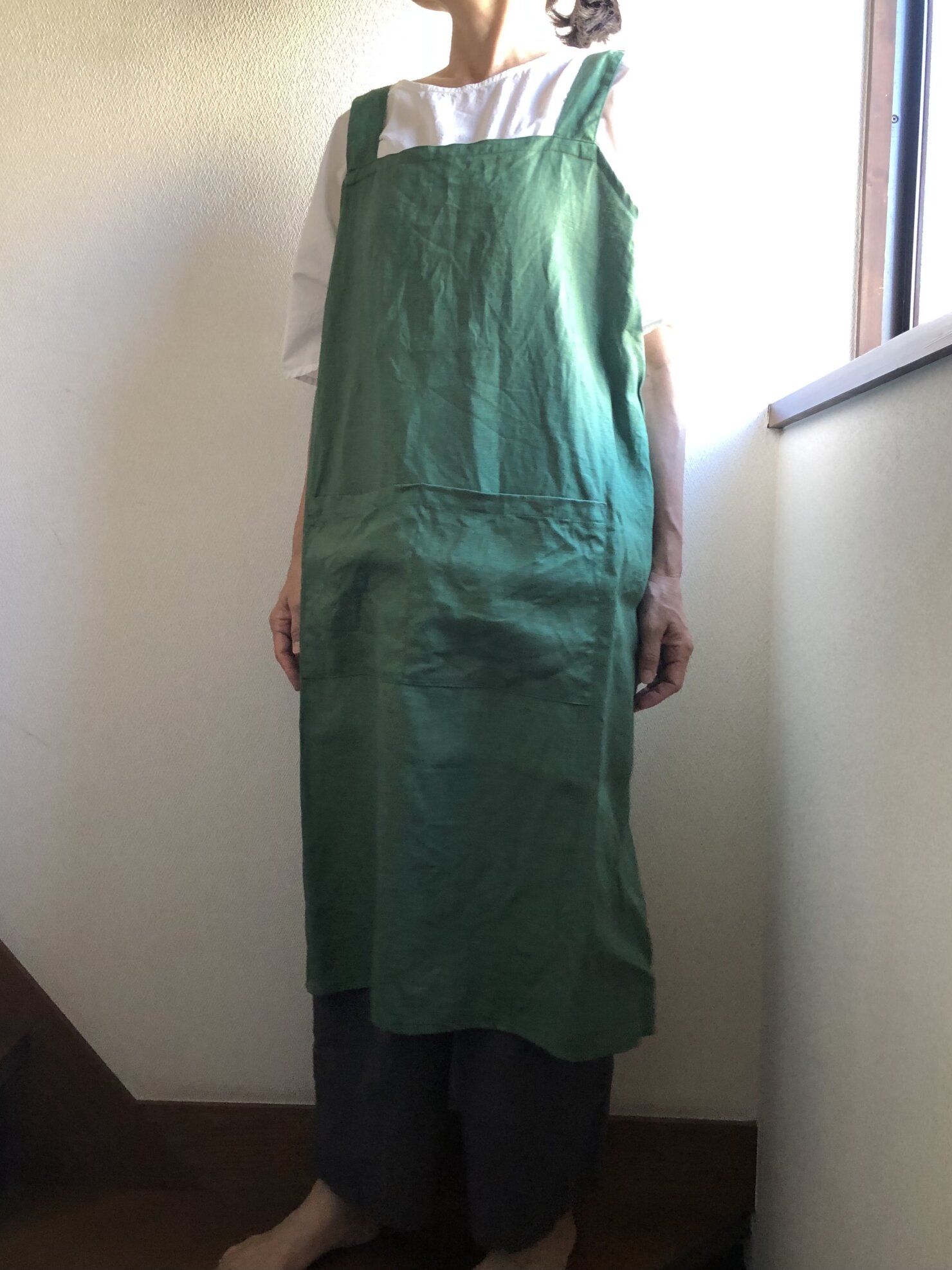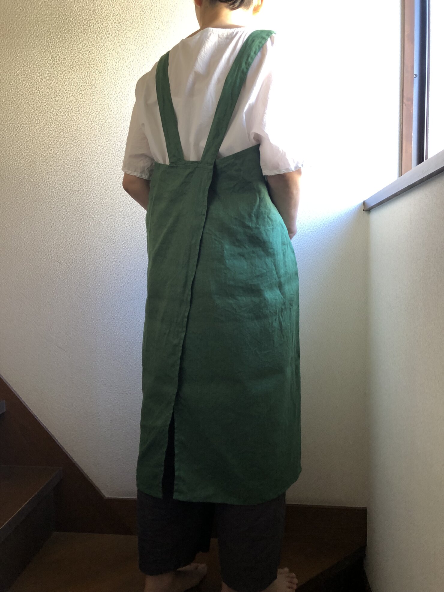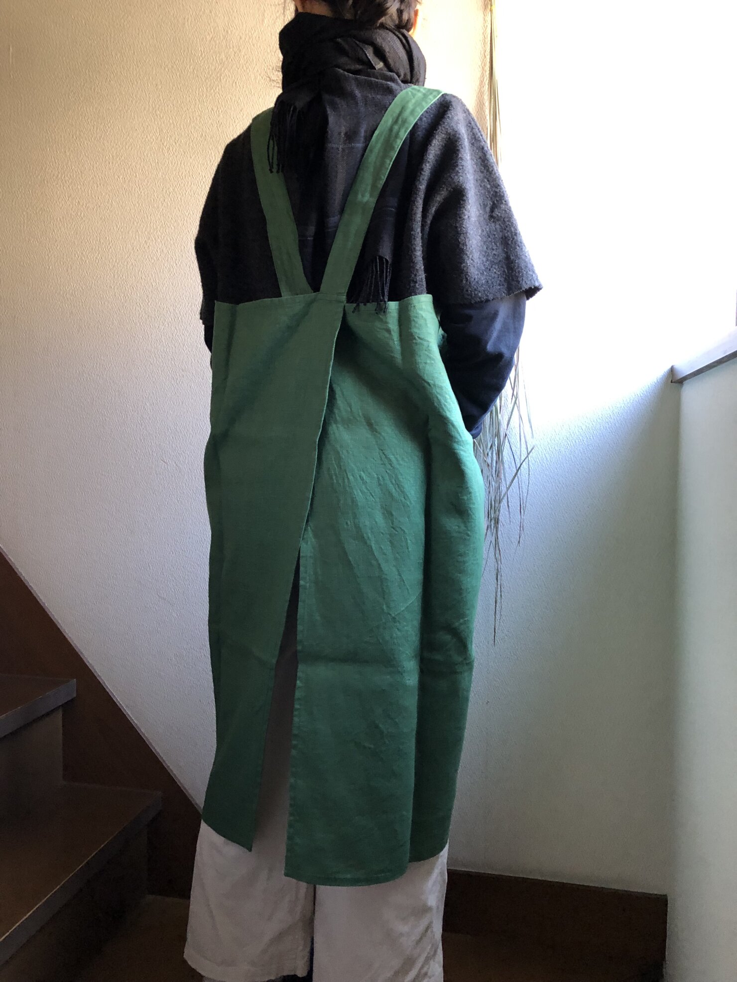 グリーンリネンクロスエプロン