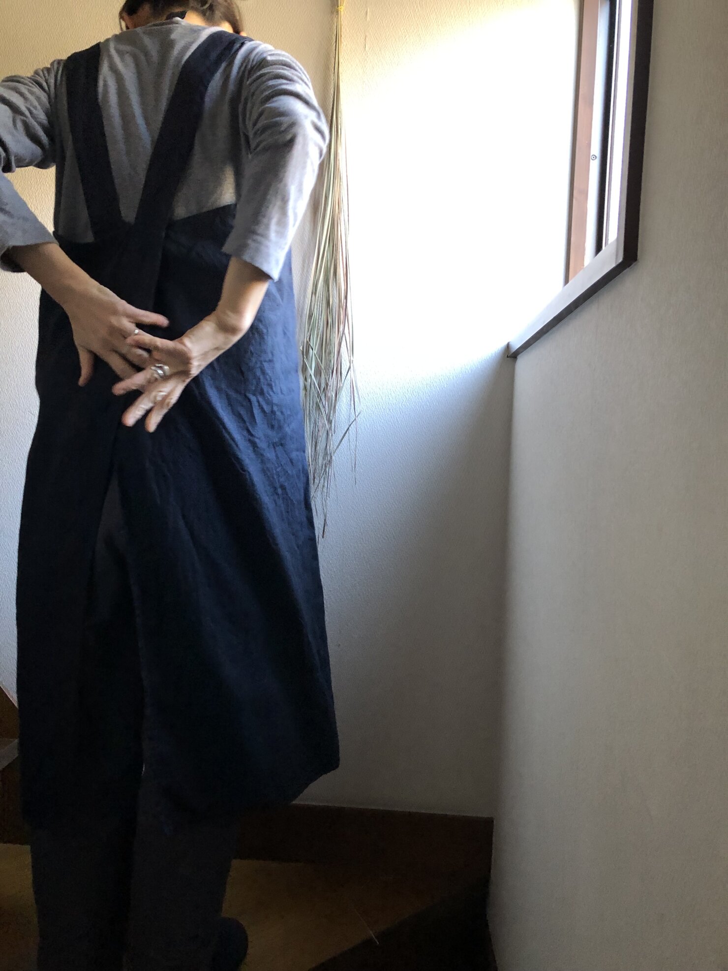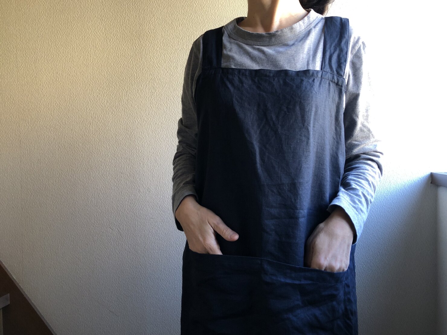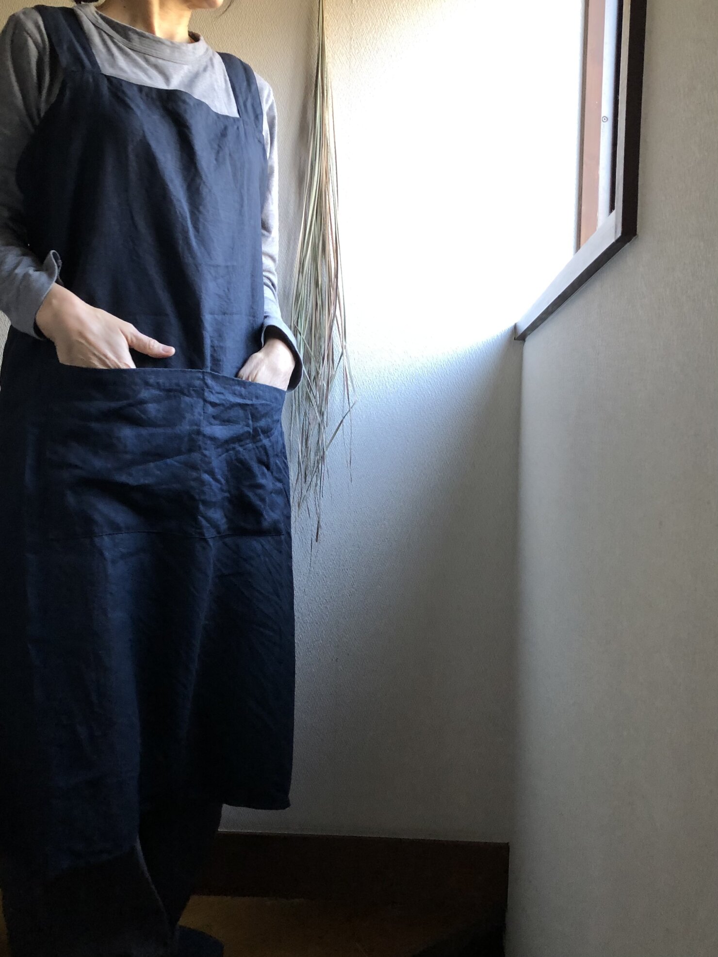 中厚くらいのリネン 胸当て上から裾まで94cm