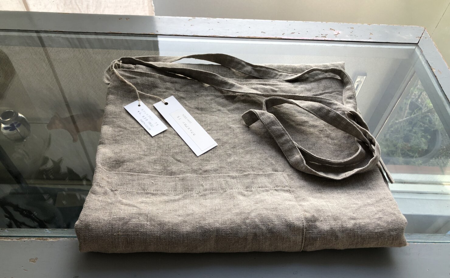 オフ白リネン クロスエプロン