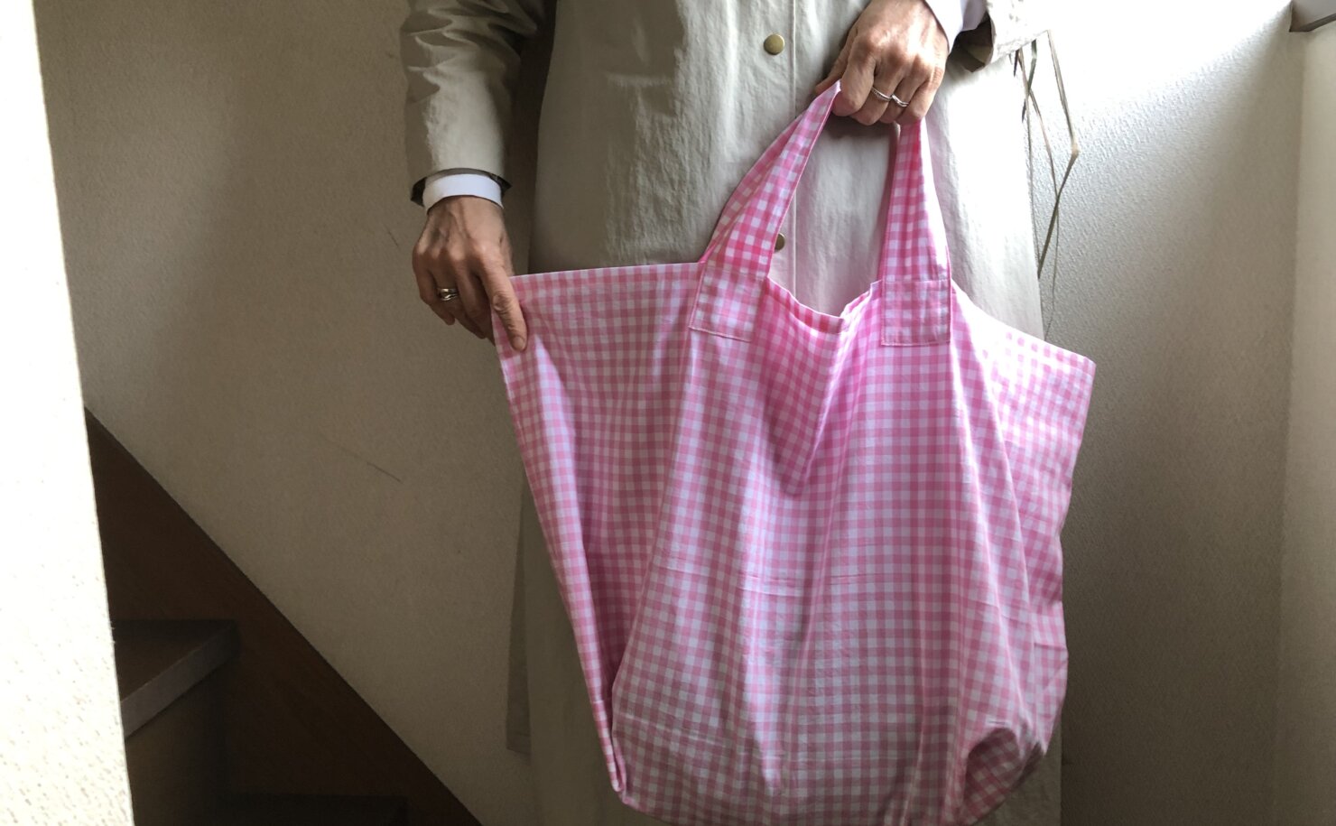 ピンクギンガムチェックバッグ
